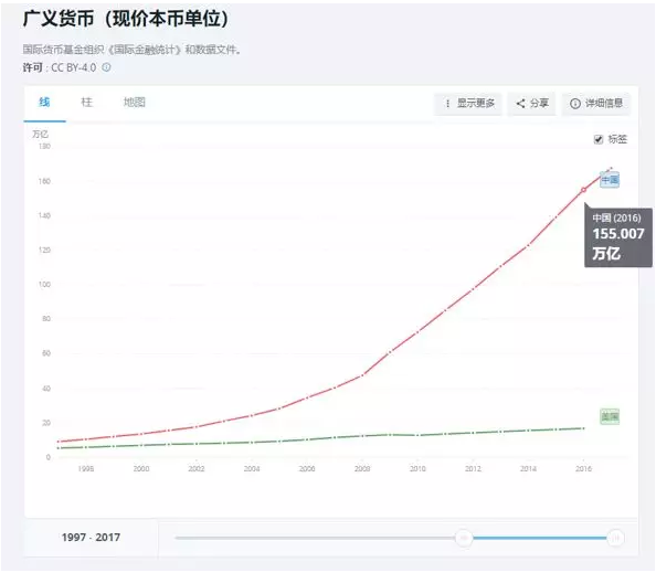 上图来自世界银行,对广义货币的统计,我们可以看到,中国和美国,起点相同,但货币量的差异越来越大,这种情况下,如果不做外汇管制,汇率将会拉大。因此,所有国民财富的守护,关键点就在保“7”。